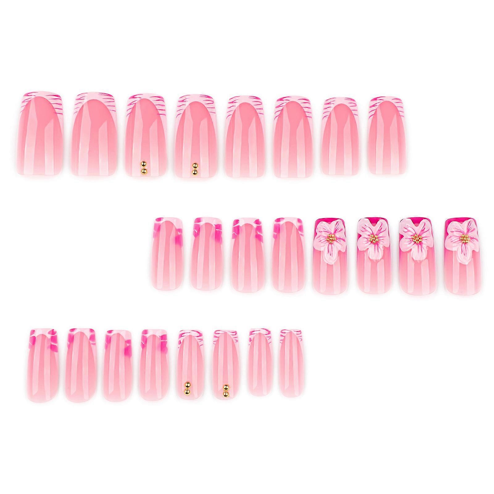 24PCS Pink Fake Nails with Zebra Stripes Print Easy Effortless Application to