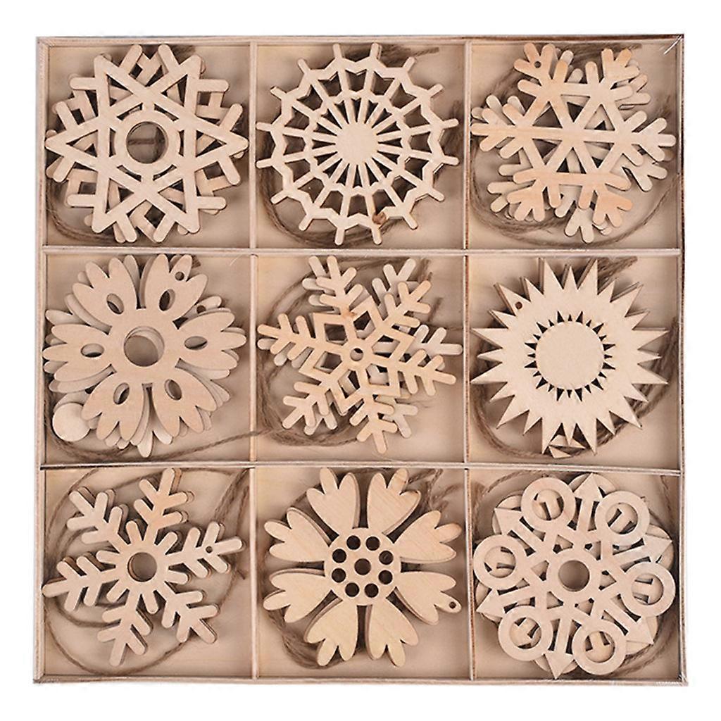 27PCS DIY Snowflake Shapes Christmas Ornaments Wood Pieces Slices for Crafts