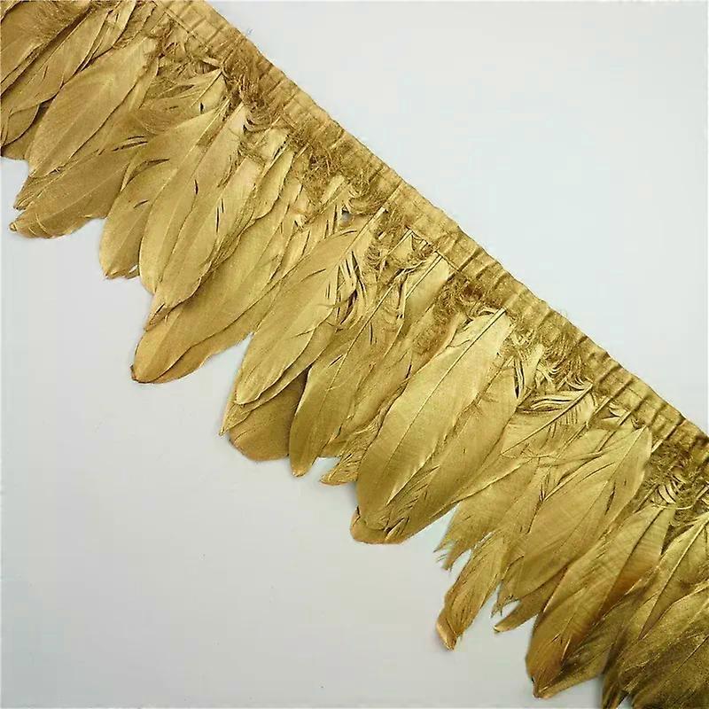 2Meter Gold Silver Dipped Goose Feathers Trim on Tape Ribbon Geese Feather for Crafts Sewing Trimmings Fringes for Clothes Decor