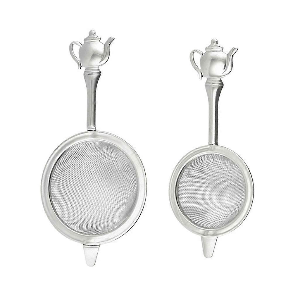 2pcs Tea Infusers Fine Mesh Filters with Handle for Straining Tea Residue (Silver)