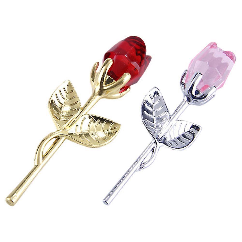 2pcs Crystal Rose Craft Metal Rose Adornments Wedding Flower Ornaments