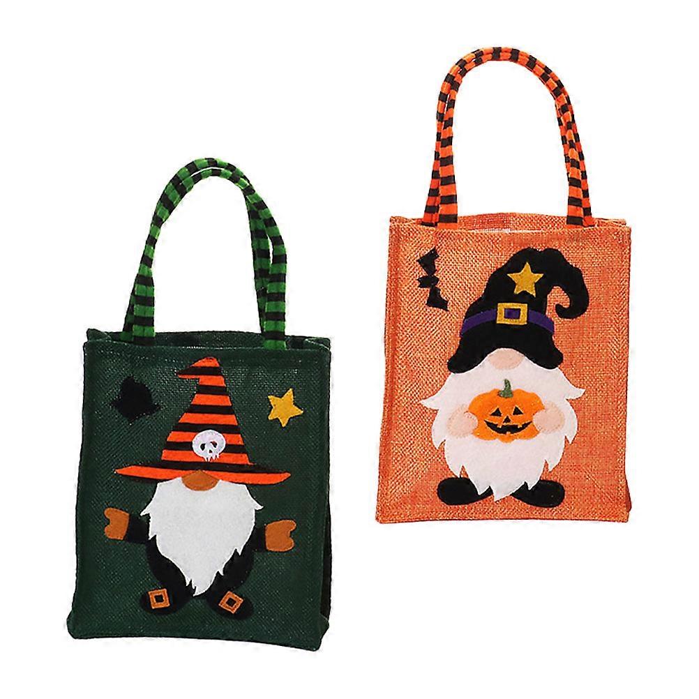 2Pcs Halloween Burlap Candy Bags Practical Design Rectangular Shape Assorted For Family Events Kindergarten