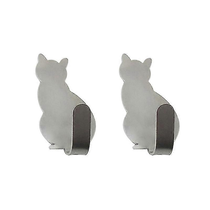 2pcs Hook Sturdy Strong Adhesive Cat Design Stainless Steel Sticky Hook For Kitchen Jikaix
