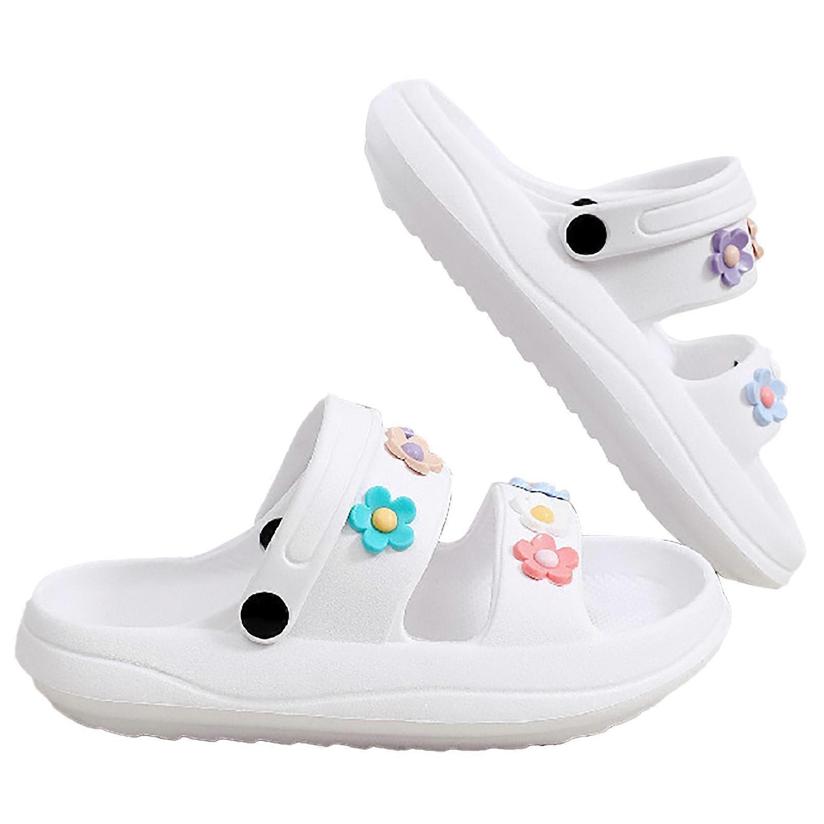 2pcs Strap Thick Cushioned Slippers Flower Decoration Thick Bottom Pillow Slippers for Summer Outdoor