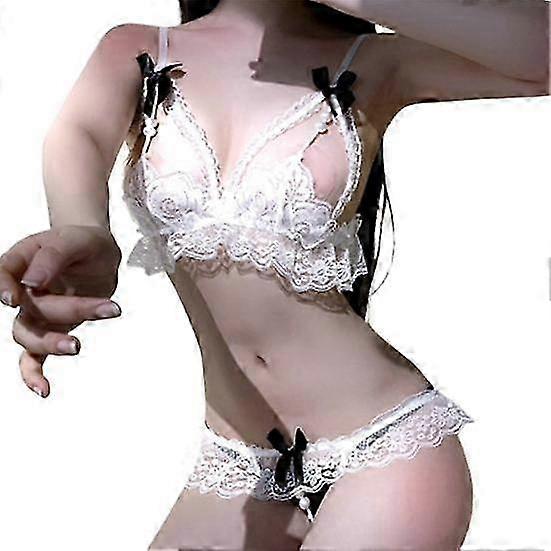 2Pcs/Set Popular Underwear Set No Underwire Perspective Lightweight Lace Design Sexy Bra Panty Lady