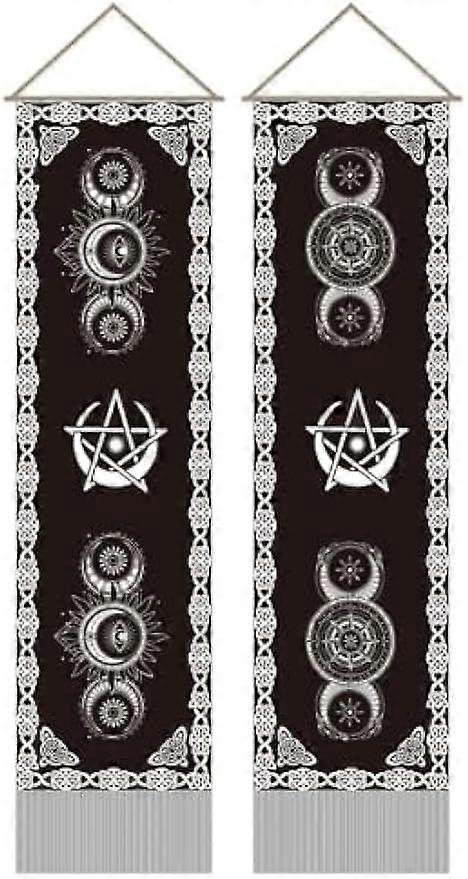 2Pcs Sun and Moon Tapestry Mystical Symbol Long Vertical Tapestry Wall Hanging Mystic Stars Tassel Wall Tapestry Mystic Aesthetic Tapestry for Bedroom