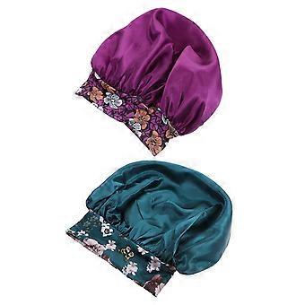 2pcs Sleep Hat for Women – Hair Care Protector Caps, Large Bohemian Printed Headwraps, Lightweight Elastic Night Bonnet for Pillow Protection