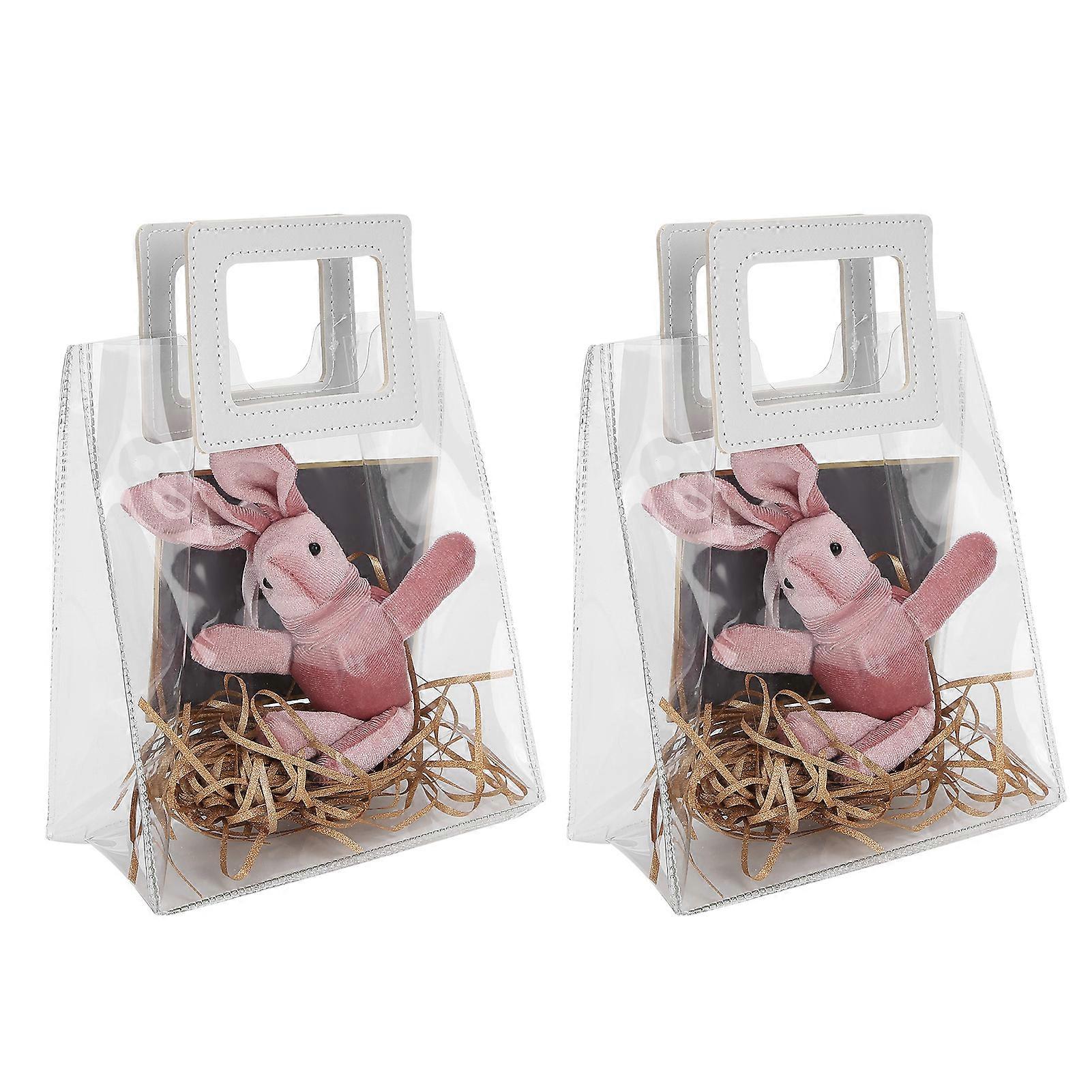 2pcs Bags Transparent Gift Bag Sturdy Bottom Handbag for Birthday Christmas Gift Packaging (S)