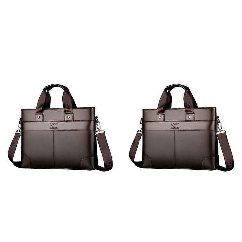 2X LINGZHIDAISHU Business Men'S Briefcase High-Quality Handbag Leather Men'S Laptop Bag Messenger Bag Men Brown