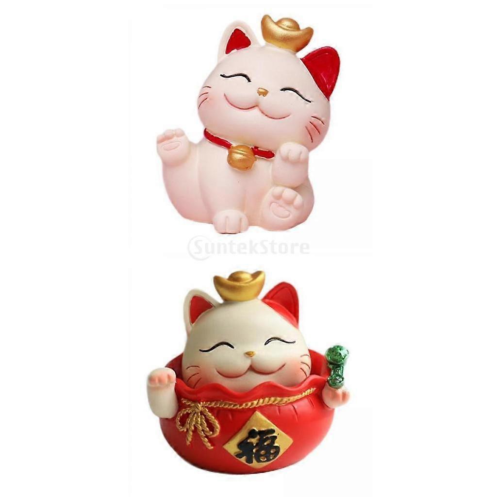2x Lucky Cat Figurines Car Decor Statue for Dashboard Home