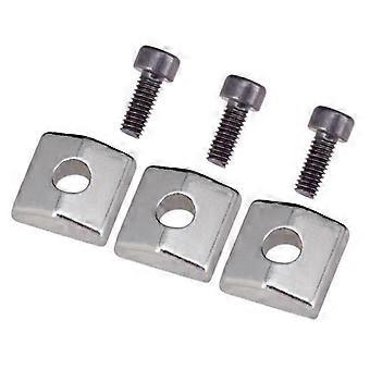 Description: Set of 3 Guitar Locking Nut Clamp & Screws for Tremolo Bridge Parts. High quality and brand new. Compatible with electric guitar replacement parts. High quality material for extreme strength and durability. Material: Iron Size Chart: Size: Approx. 11.8x11.6mm/0.46x0.45inch Package Includes: 3 Pieces Electric Guitar Locking Nut Clamp 3 Pieces Electric Guitar Locking Nut Screws(3 Pack)