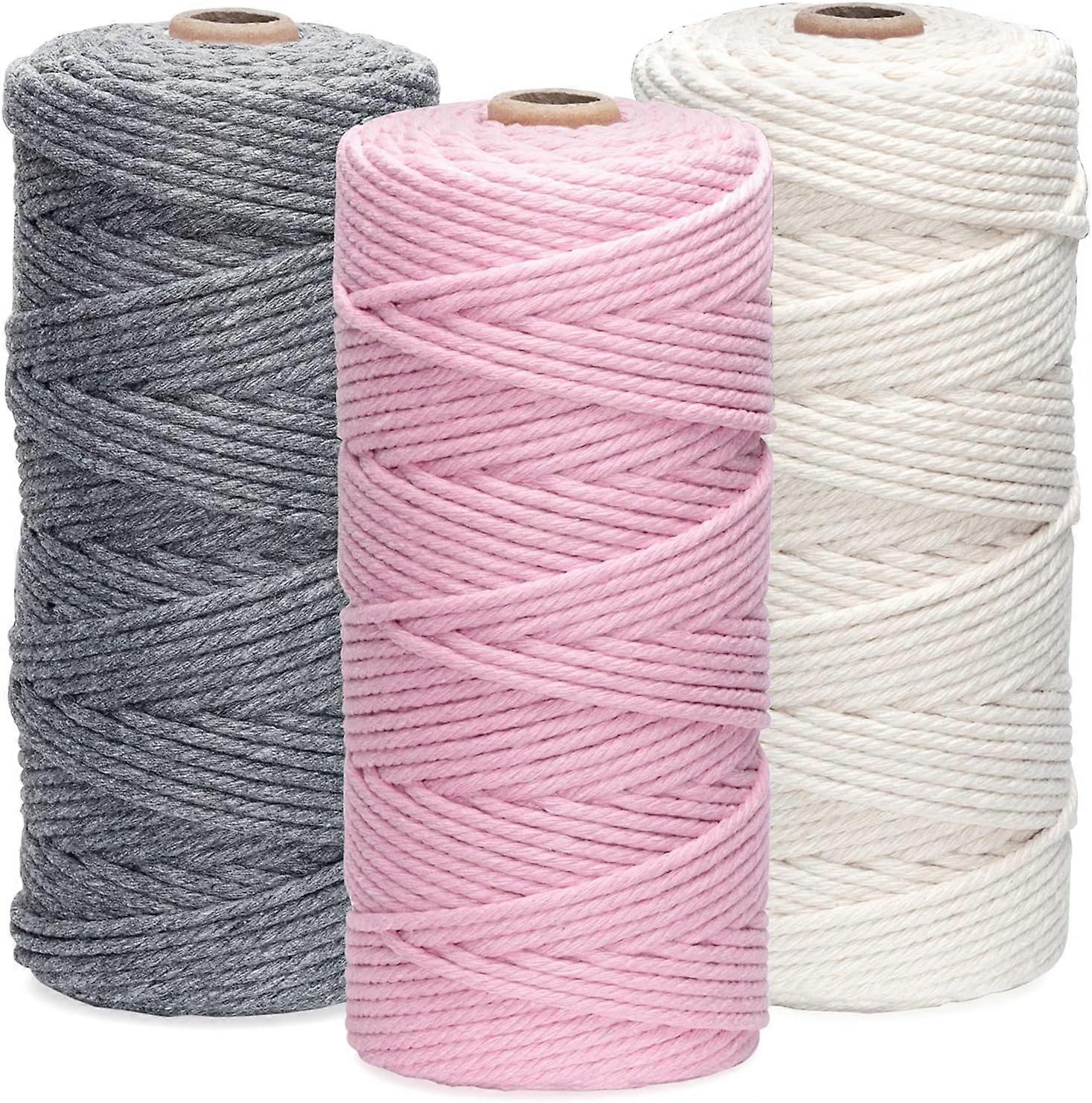 3 Rolls Macrame Cord 3mmx100m,DIY Craft Cord Cotton Rope for Wall Hanging,Plant Hangers,Crafts,Knitting,Decorative Projects