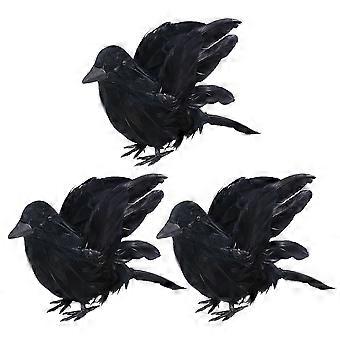 3Pcs Halloween Simulation Crow Ornaments Halloween Crow Shape Props (Black)