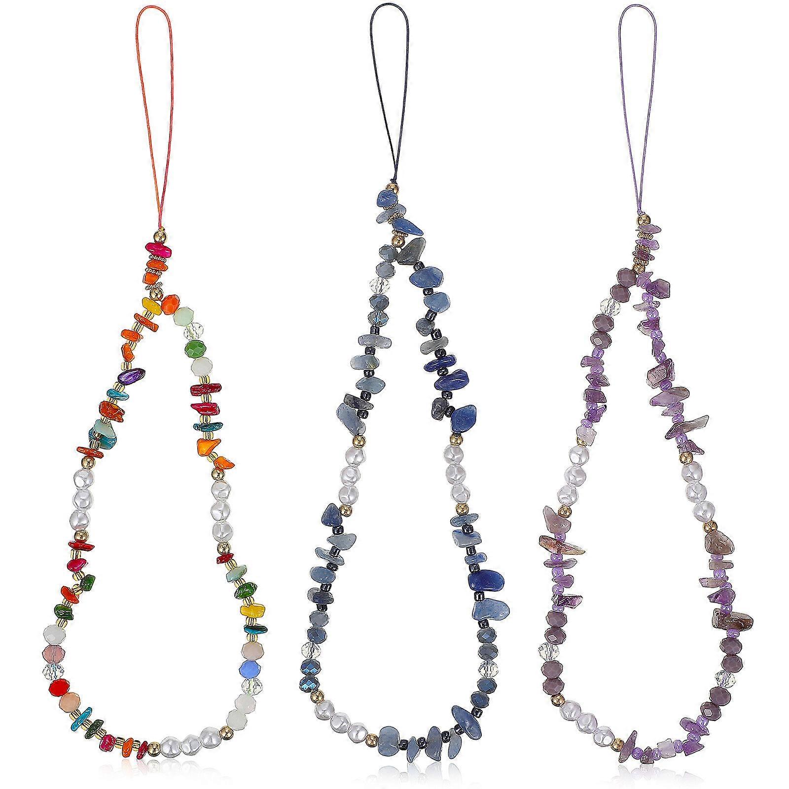 3 Pcs Phone Straps Stones and Artificial Pearls Mobile Phone Lanyards Wrist Bracelets Straps Decorative Accessories