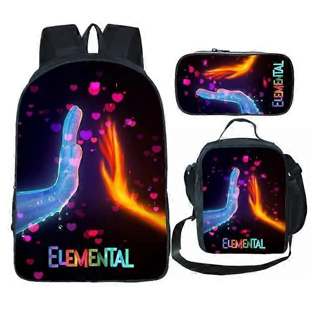 3 Pcs/set 16 Inch Elemental 3D Print Children School bags For Boys Girls Kids Cartoon Schoolbag +Lunch bag+Pen Bag