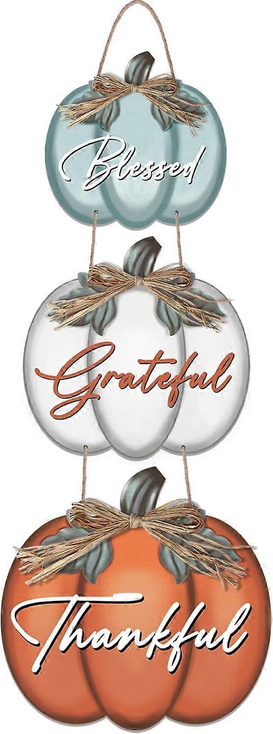 3 Pieces Pumpkin Decor Grateful Thankful Blessed Wall Signs,Rustic Hanging Welcome Door Sign for Autumn Harvest Thanksgiving Halloween Door Wall Decor