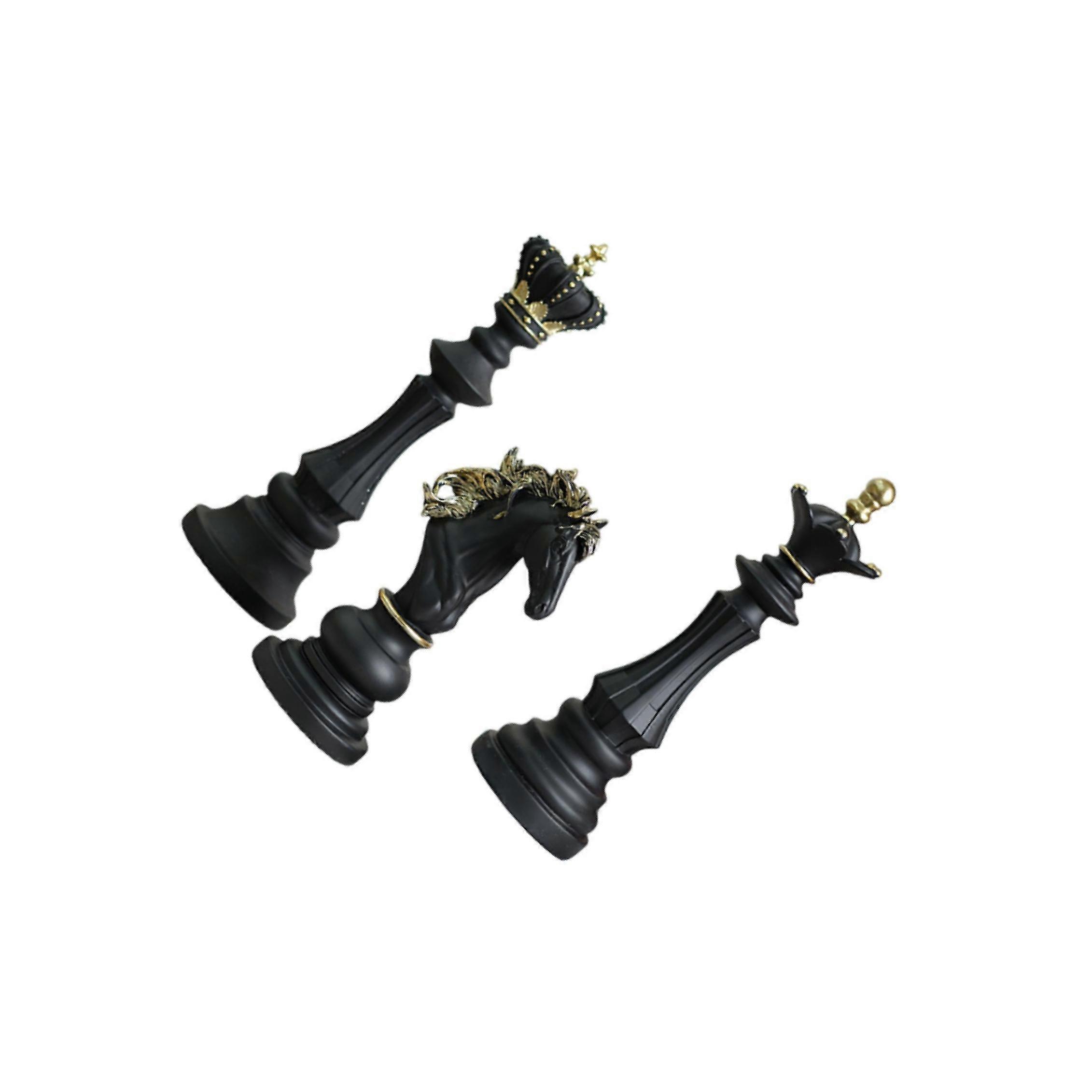 3 Pieces Chess Pieces Statues Gift Resin Sculptures for Bedroom Coffee Table Black
