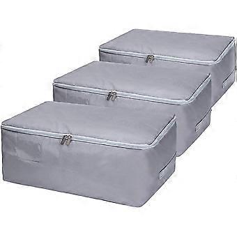 3 stycken Stora klädställ Underbäddskommoder, vikbara arrangörsväskor för täcken (grå, L)