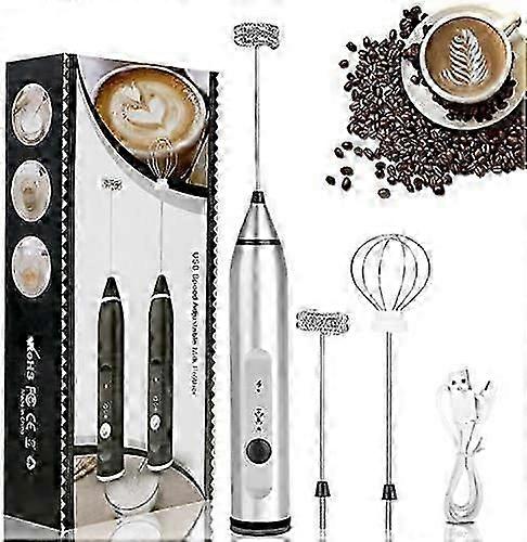 3 Speed Electric Milk Frother with 1 Stainless Steel Spring Whisk, 2 Stainless Steel Double Spiral