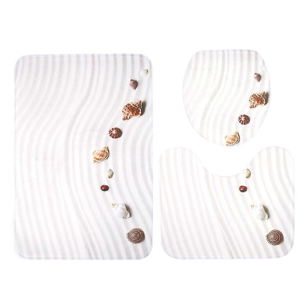 3PCS Shell Theme Shower Waterproof Non-slip Bathroom Mat + Rug + Toilet Lid Cover Set (L)
