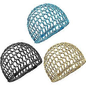 3st Mesh Virkat hårnät, Rayon stickad snood hatt, tjockt hårnät snoods täcka prydnad för nattsömn