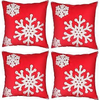 4-Pack Christmas Pillowcase Embroidered Snowflake Pillowcase Canvas Cotton