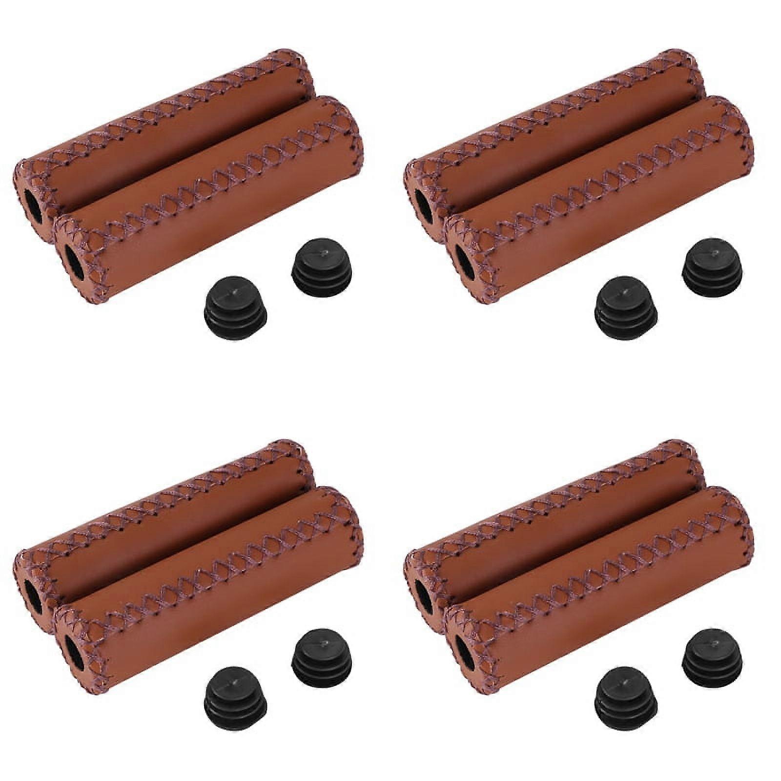 4 Pair Vintage Leather Bicycle Grips Grips Trekking Handlebars Cover Colour: Brown