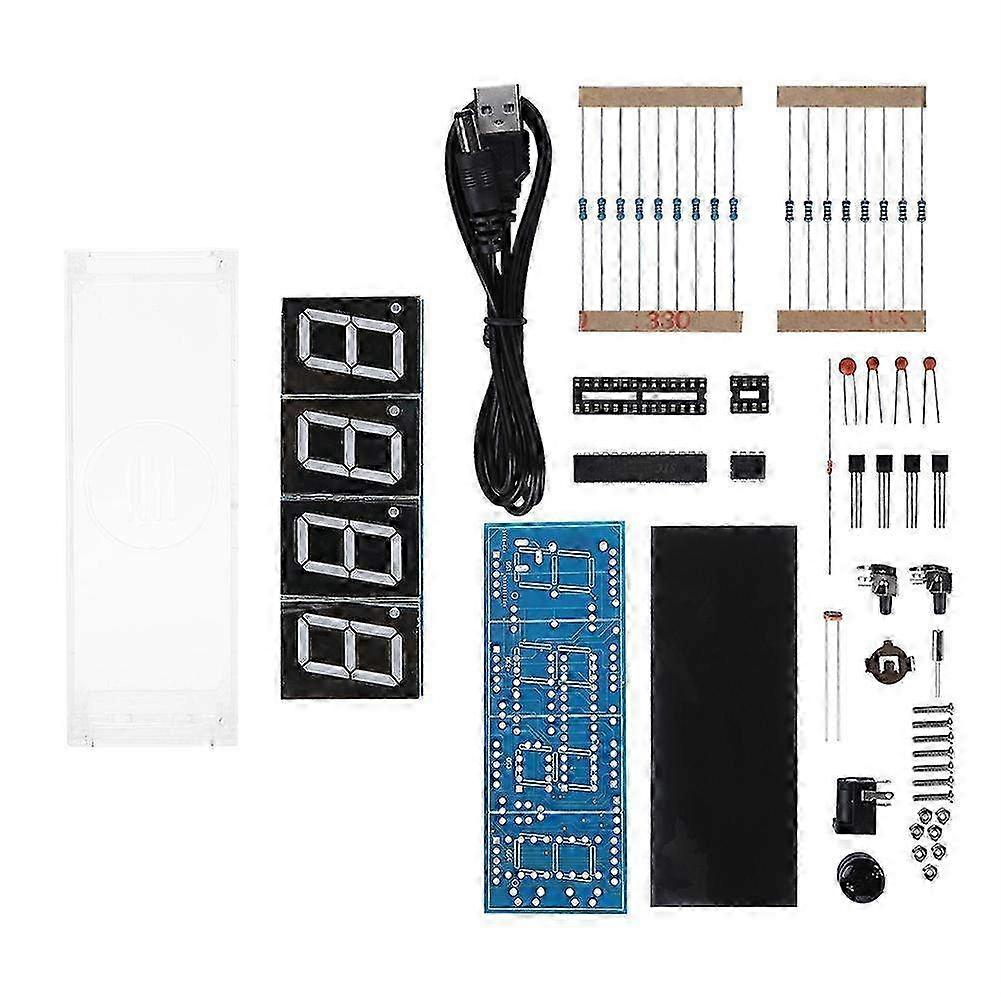 4-Digit DIY Digital LED Clock Kit with Auto Display - Electronic Clock for Time & Temperature in White - Fun Assembly Project