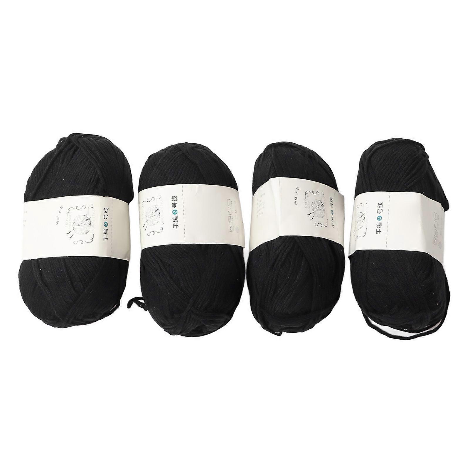 4Pcs Cotton Yarn 3mm Pure Elegant Color Soft Elastic Skin Friendly Breathable Knitting Yarn for Clothes Hat Scarf Black