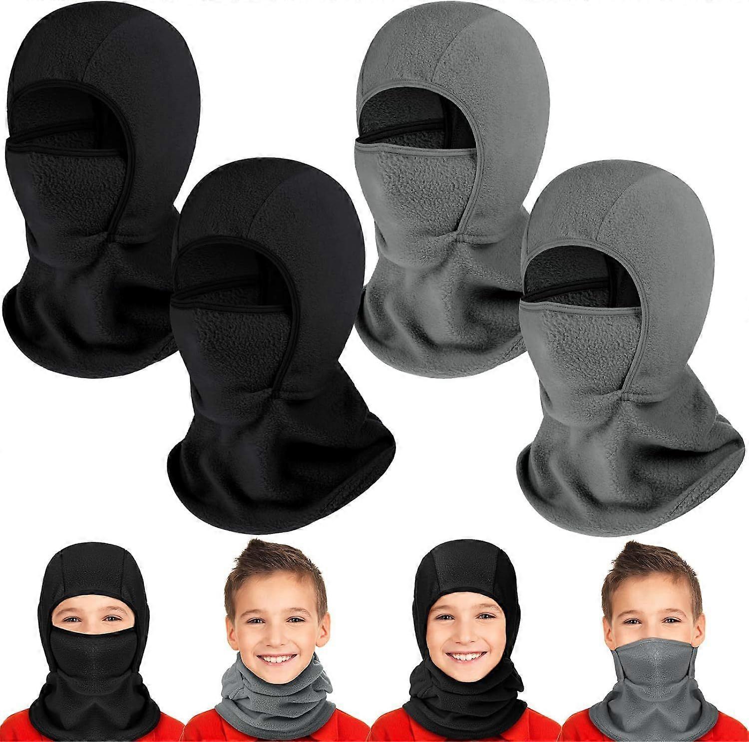 Versatile: This children's ski mask is versatile and can meet your various wearing needs. It can be used as a balaclava, hood, neck warmer, face mask scarf, head covering, full or half face mask, ski mask, scarf, neck warmer, warm face mask, or headband, keeping you warm during outdoor activities. Ample Quantity and Variety: This children's winter mask set includes 4 masks, providing ample quantity to easily meet your various needs for wearing, changing, sharing, and matching during winter. Thick and Warm: This children's balaclava is made of high-quality fleece fabric, which is soft, thick, warm, skin-friendly, breathable, durable, washable, foldable, and portable, making it a practical essential for your winter outdoor activities and providing a comfortable wearing experience. All-round Protection: This children's balaclava completely covers your head, neck, and lower face, effectively keeping you warm while blocking dust, UV rays, and wind, making it an ideal choice for your winter outdoor activities. Suitable for outdoor activities such as hiking, fishing, rock climbing, cycling, camping, running, skiing, or other sports. One size fits all: This fleece face mask for children measures approximately 39 x 23 cm / 15.35 x 9.06 inches. It is one size fits most children with different head circumferences, and is especially suitable for children aged 4 to 13. Please carefully check the size information before purchasing.