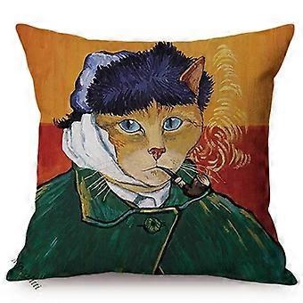 45x45cm Katt Rolig Porträtt Imitera Världsberömd Oljemålning Nordisk Konst Affisch Heminredning Kuddfodral Soffa Örngott