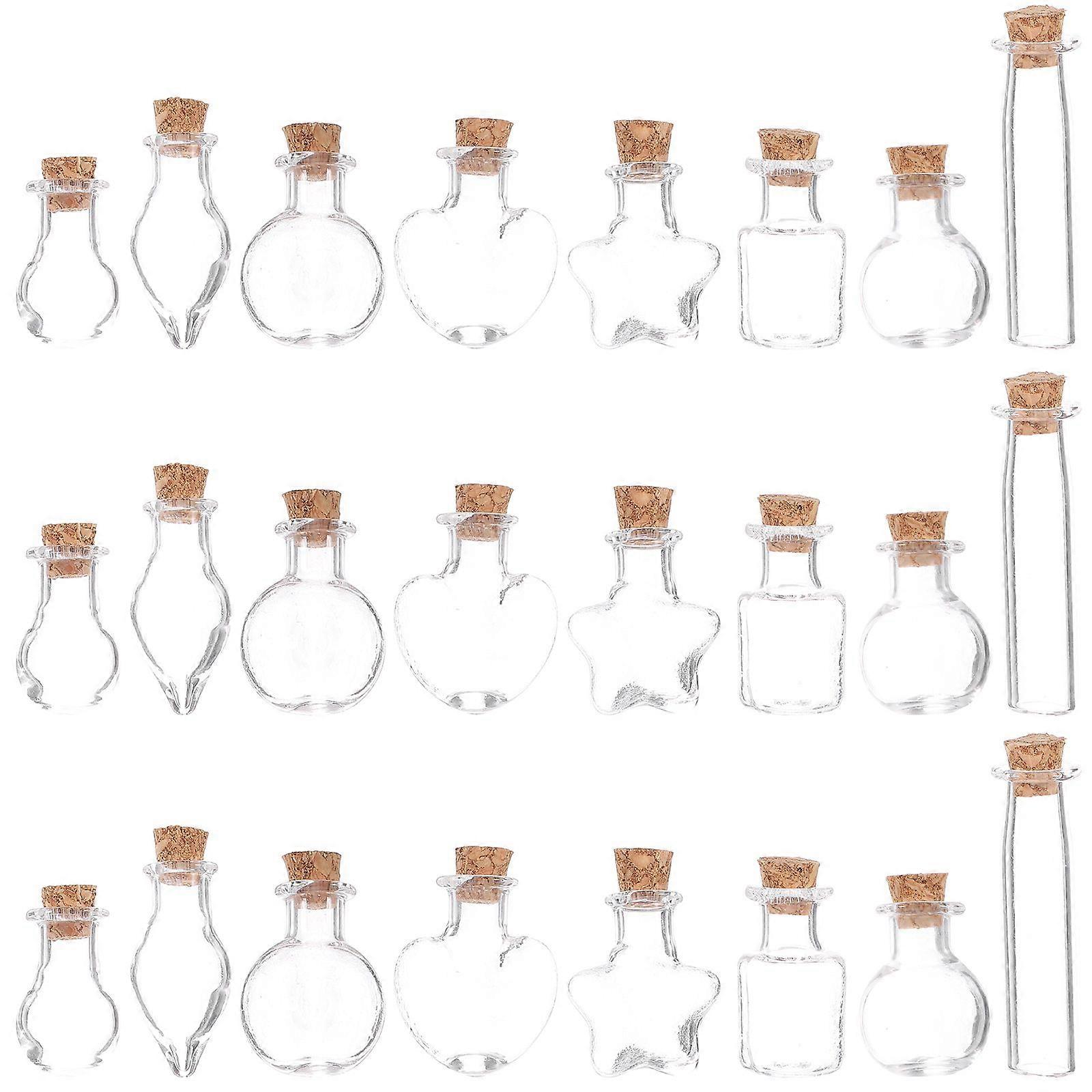 Description The Mini Glass Bottle can be filled with sand, beautiful powder, wish paper and so on. Cork stopper keeps the liquid safe in the bottle, easy to carry and use. You could send it to your friends and families as a gift, and they will be very happy. Sufficient quantity can meet your quantity demands. Features -Color:As Shown -Material:Glass and oak -Size:2.50X2.00X2.00cm/0.98X0.79X0.79in -Size:3.10X1.30X1.30cm/1.22X0.51X0.51in -Size:2.50X1.40X1.40cm/0.98X0.55X0.55in -Size:2.30X1.50X1.50cm/0.90X0.59X0.59in -Size:2.50X1.90X0.50cm/0.98X0.75X0.20in -Size:2.50X1.40X0.50cm/0.98X0.55X0.20in -Size:2.60X2.30X0.50cm/1.02X0.90X0.20in -Size:4.30X1.00X1.00cm/1.69X0.39X0.39in -Mini glass bottle is made from glass and wood material to provide you with a long time and durable use. -An adorable glass bottle that's great for drift bottle, perfume bottle and so on. -It can be used as a bottle for storing wish messages, essential oils or other small objects. -Your friends or family members will be happy to receive this practical bottle because they are multi-functional. -You can also use them to DIY make some drift bottles and filled it with sand and wish paper.Package list: 48 mini glass bottles