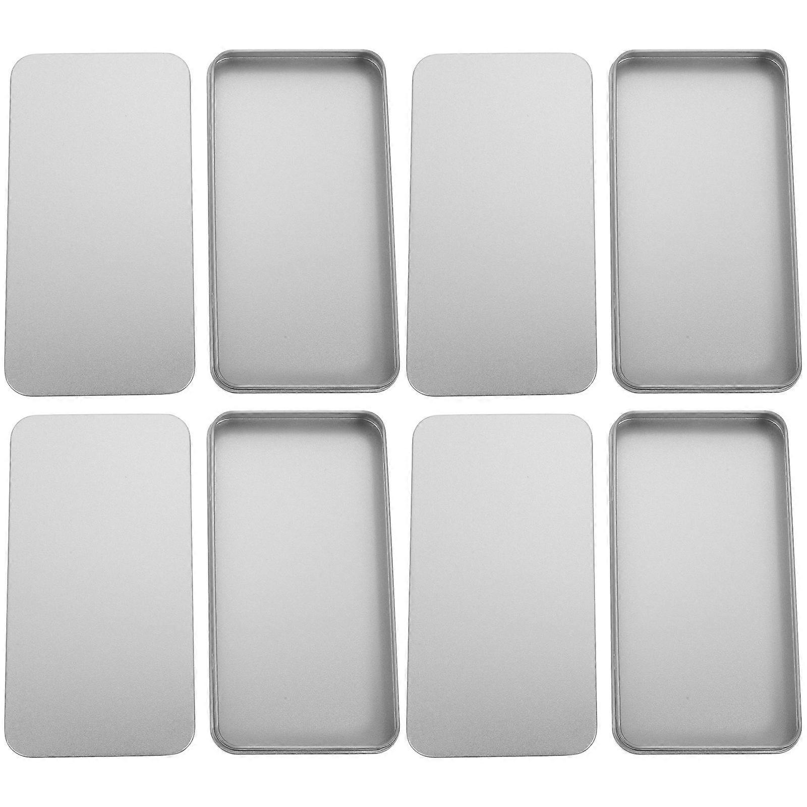 4Pcs Rectangular Portable Storage Box Empty Tins with Lid for Home Organization and Travel Use in Silver