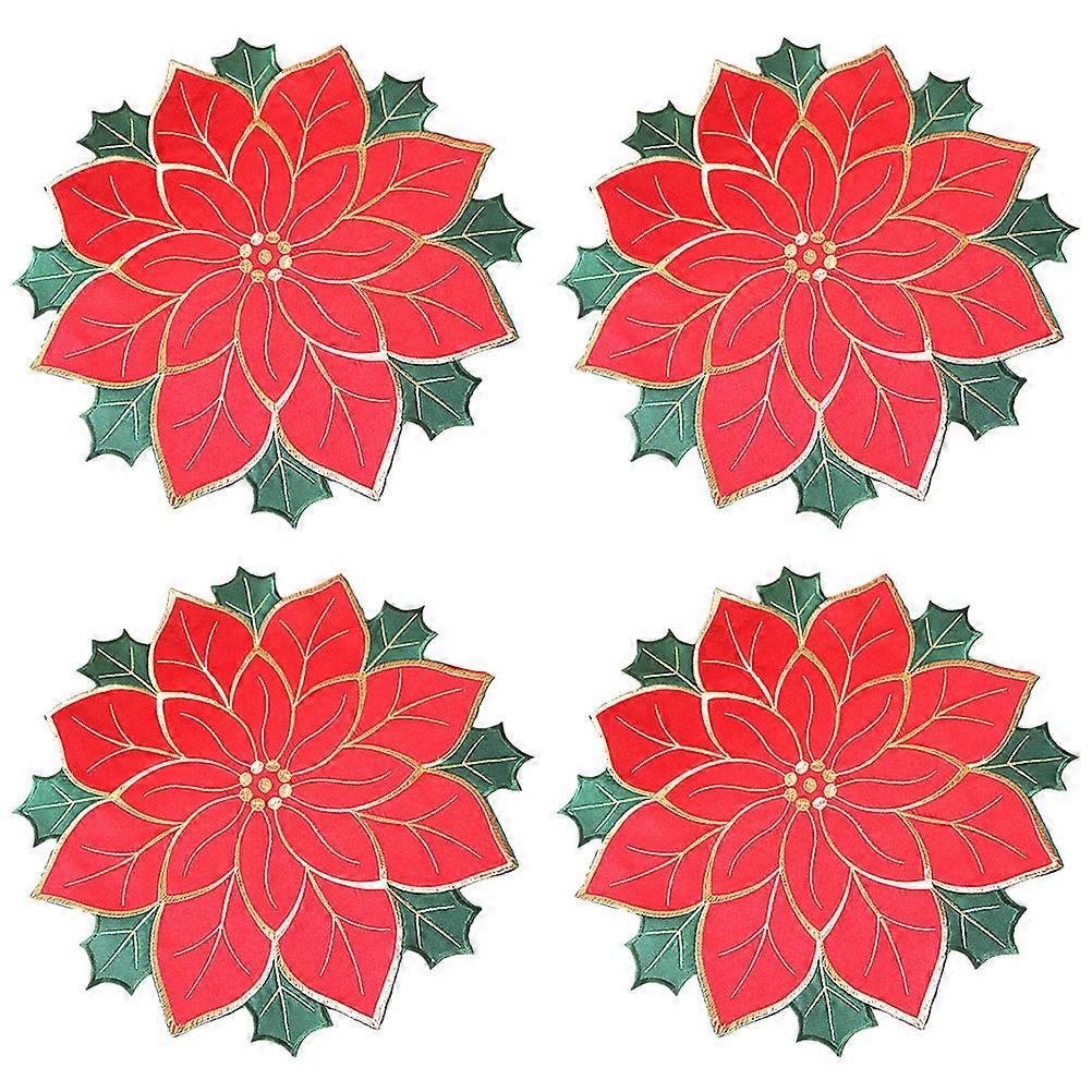 4Pcs Festive Design Placemats Square Poinsettia For Holiday Dining Table Protection