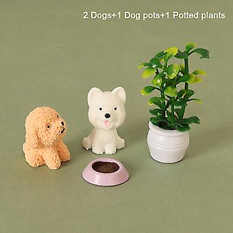 4pcs/set Dollhouse Pet Dog Model Dollhouse Mini Potted Dolls House Accessories
