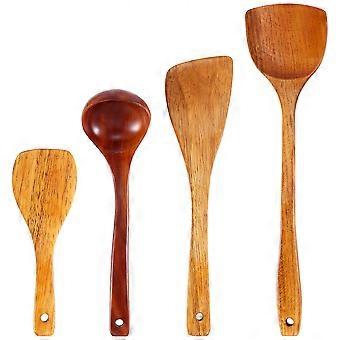 4pcs Wooden Shovel Spoon Non Stick Wood Long Rice Spatula Kitchen Cooking Utensil Hand Stir Fry Too