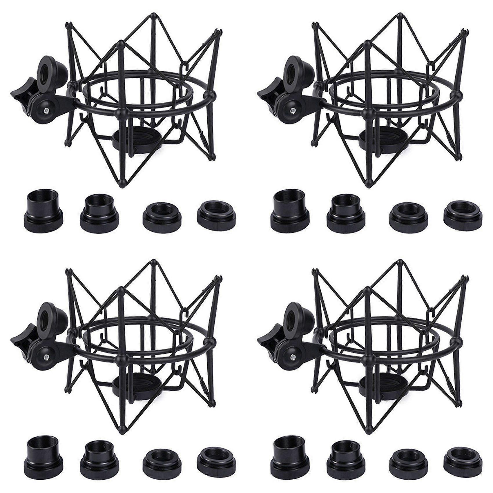 4X Microphone Shock Mount Adjustable Mount Recording Mic Stand Metal Bracket Pod Microphone Stand (Black)