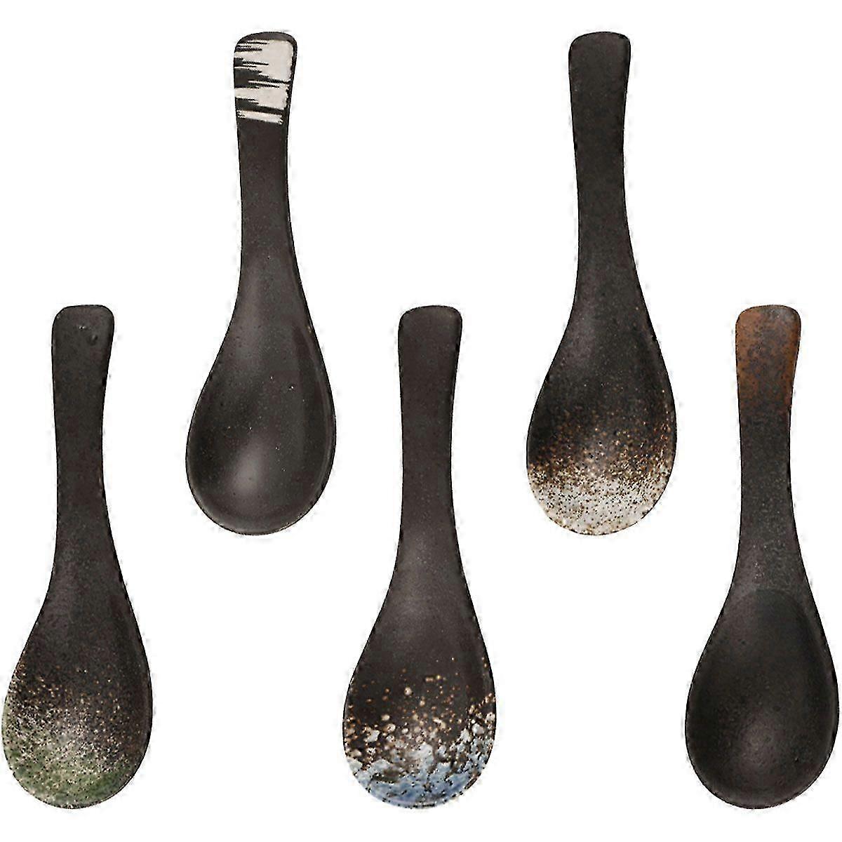 5-piece Japanese soup spoon set, retro soup spoon, ceramic soup spoon, Chinese Asian ramen tableware