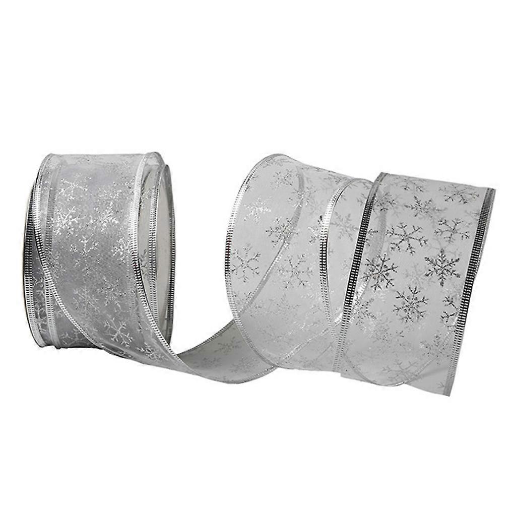 50 Yards/roll Glitter Sheer Wired Snowflake Ribbon for Wedding Party Christmas