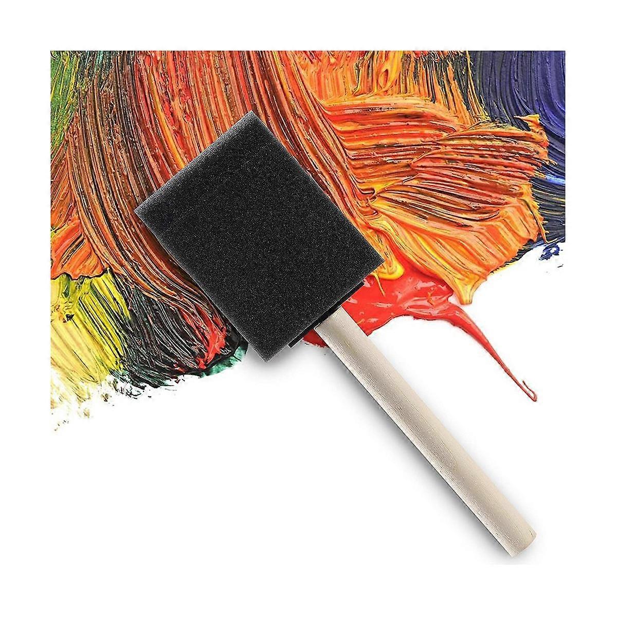 50 Pcs 2 inch Foam Sponge Wood Handle Paint Brush Set, great for Acrylics, Stains, Varnishes, Crafts, Art