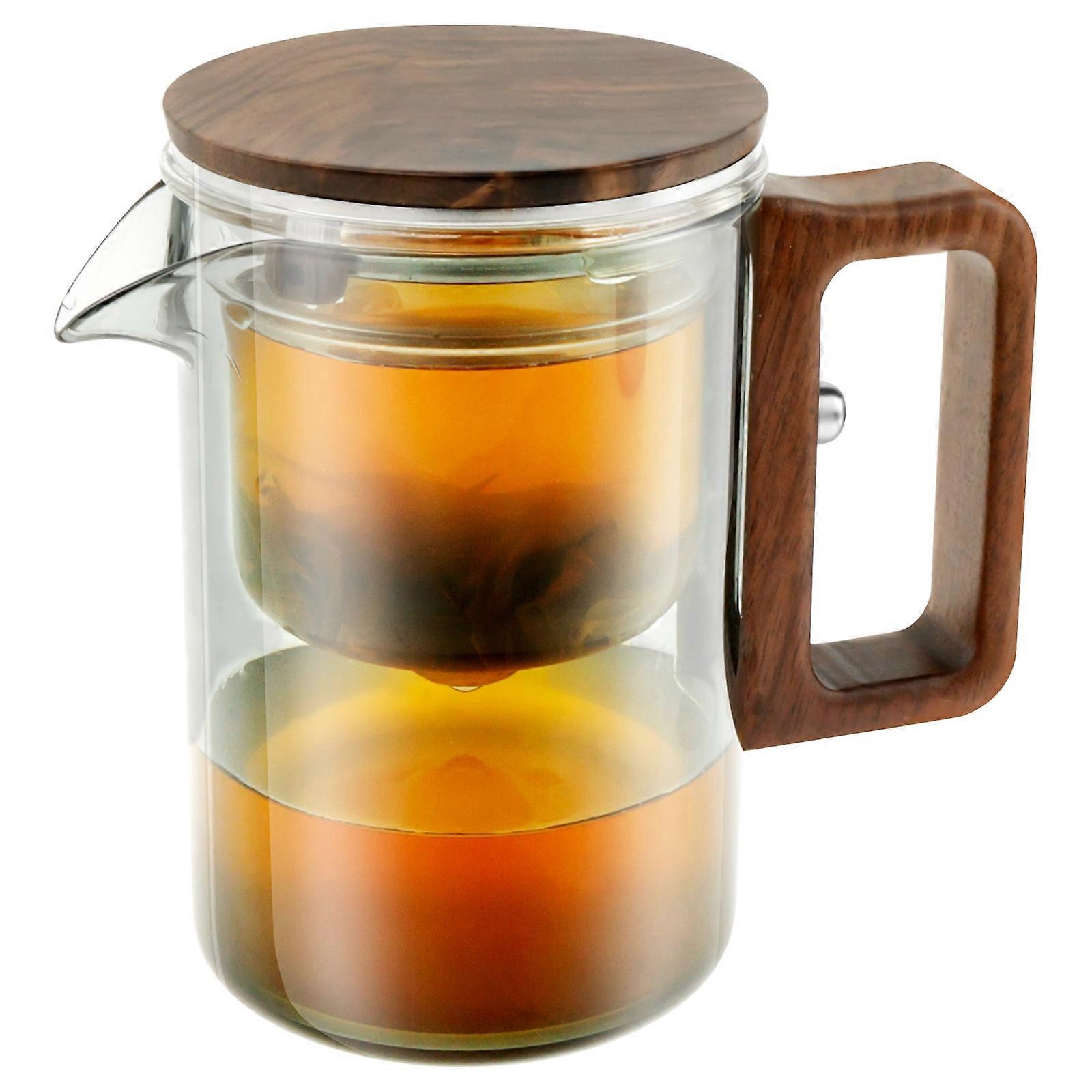 520ml Glass Teapot with Strainer, Wood Handle & Magnetic Filter, Heat Resistant for Loose & Blooming Tea