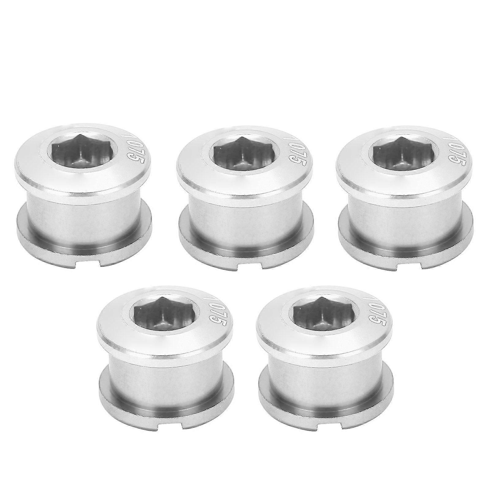 5pcs Single Chainring Bolts Crankset Nuts Aluminum Alloy Chain Wheel Screws for Mountain BikeSilver YMQX)