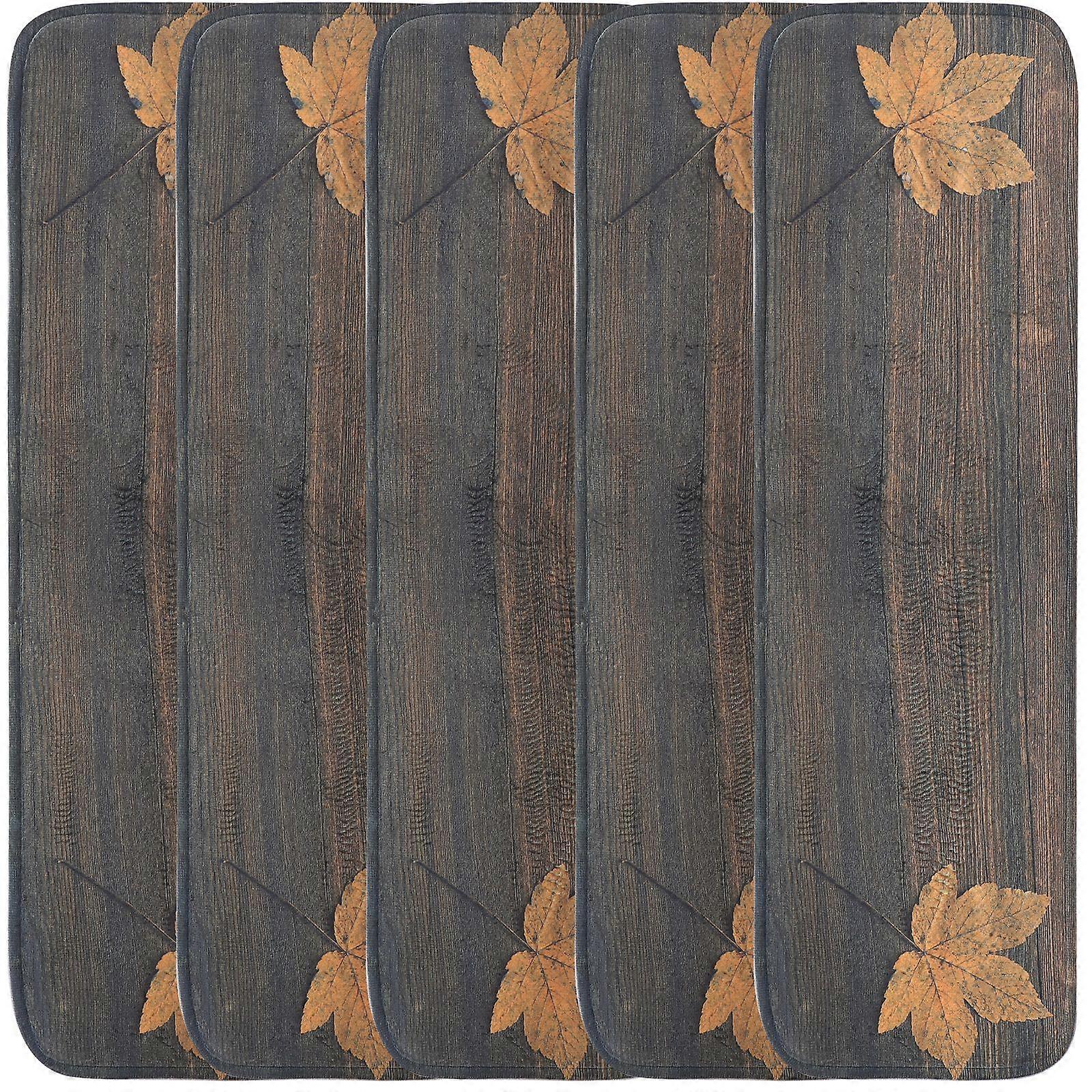 5pcs Stairs Mats Maple Leaf Plank Pattern Anti-slip Stairs Protection Cover Rug