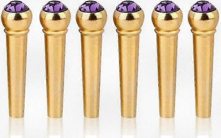 6 Brass Guitar Bridge Pins with Crystal Glass Dots for Acoustic Guitar in White
