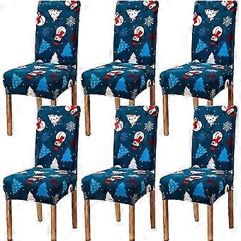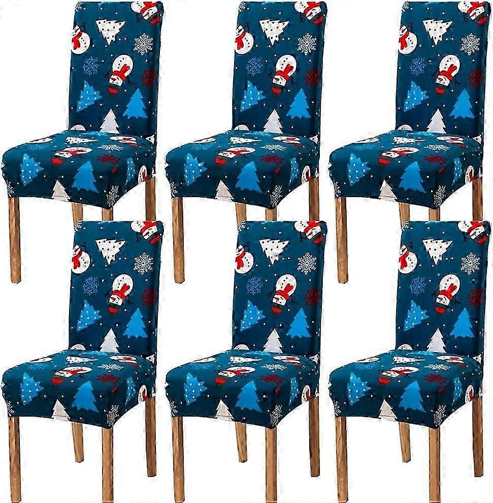 6 Pcs Blue White Snowman Dining Chair Slipcovers Soft Spandex Elastic Removable Washable Christmas Chair Seat Covers