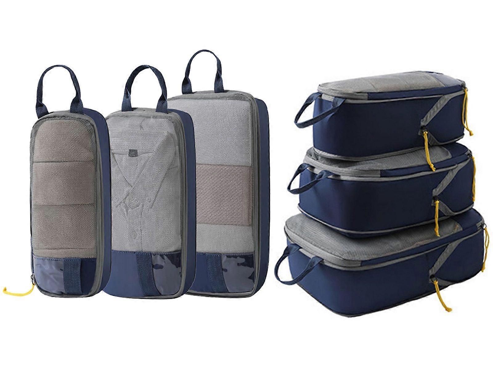 6Pcs Compression Travel Packing Storage Bag Organizers Clothes Bags Dark Blue
