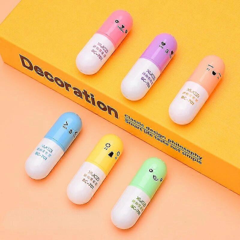 6 Pcs/Lot Capsule Eggplant Shape Cartoon Highlighters School Stationery Students Drawing Supplies Kawaii Mini Paint Marker Pen