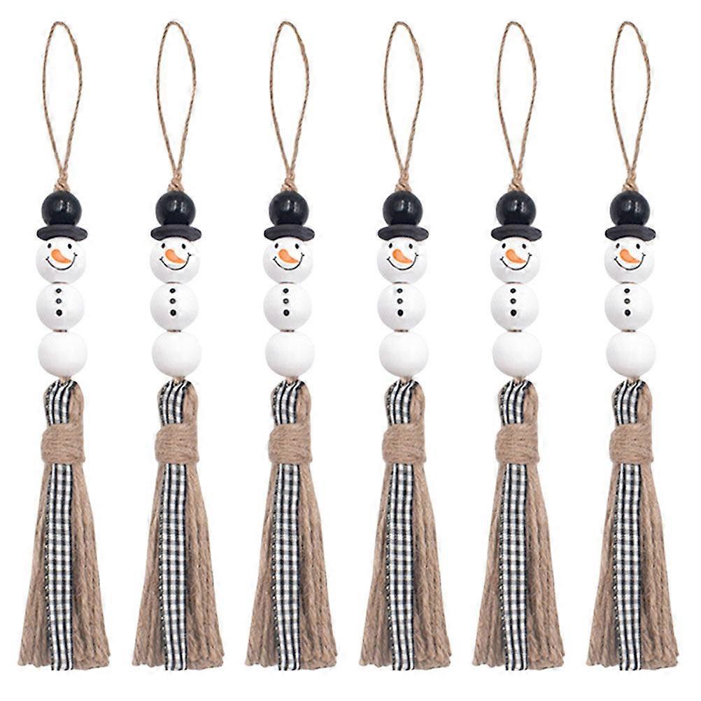 6pcs Snowman Bead Garland Christmas Tree Ornaments Xmas Wooden Bead Decors