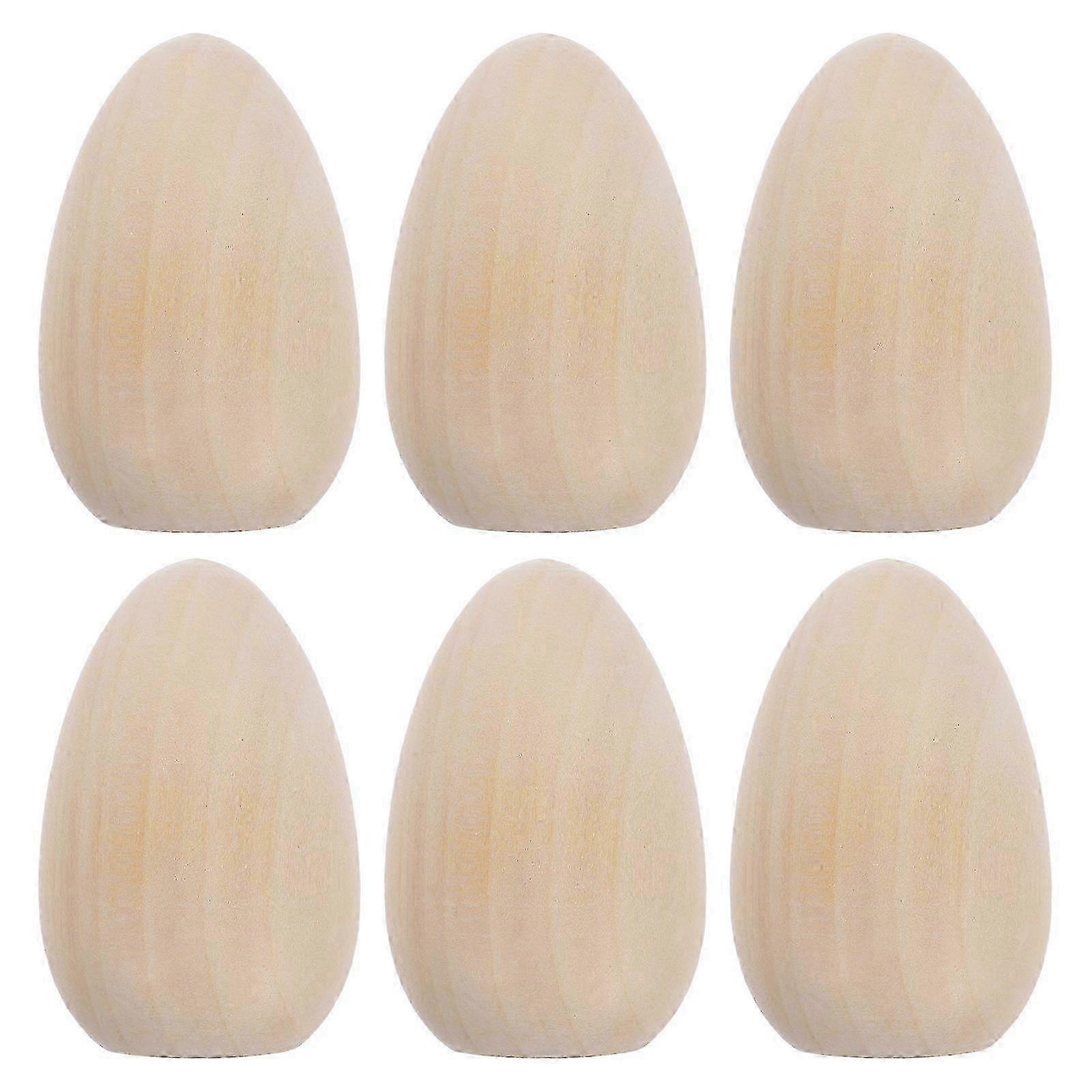 6pcs Wooden Eggs Graffiti Toy Unpainted Wooden Eggs For Easter Egg Party Wooden Easter Ornaments To Paint Eggs DIY Toy Wooden Eggs For Decorating