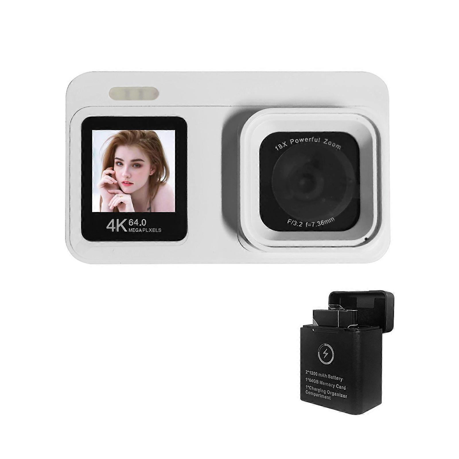 64MP Double Screen Camera 18x Zooming Compactly Design with Charging Case Easy Operation For Beginner Photography White